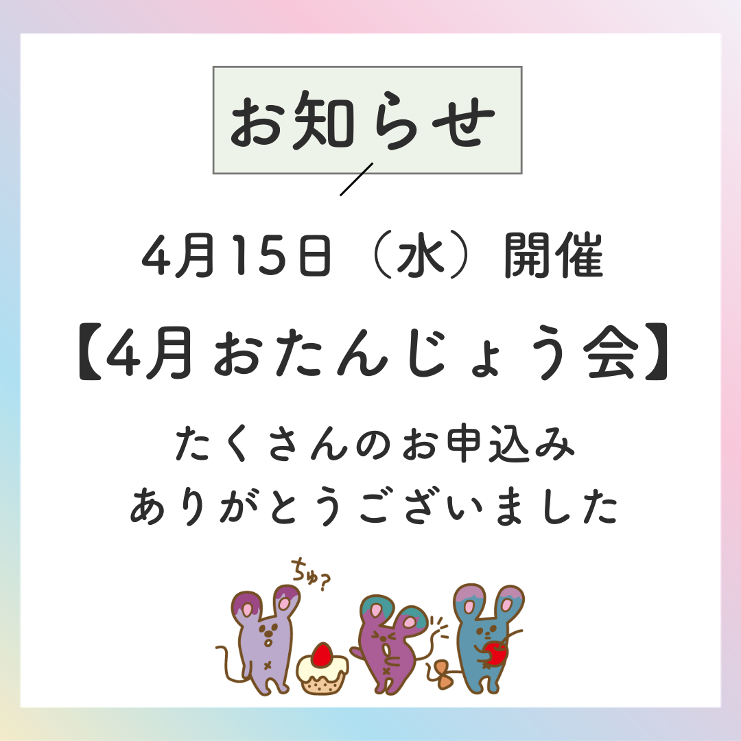 4/15(水)『4月おたんじょう会』申込みいただいた皆様へ