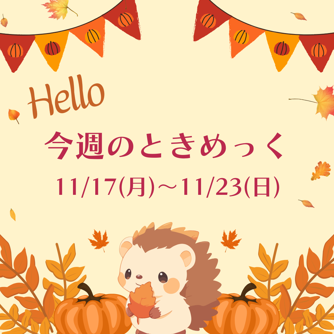 11/10(月)『お休みです』またあそびにきてね 11/12(水)11:00~『おたんじょう会』inイオンホール~あつまれ11月生まれのおともだち~ 11/14(金)10:30~11:15『ふたごみつごサロン』 11/1...